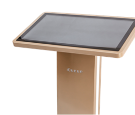 Cистемный терминал с сенсорным экраном 23.8” в напольном исполнении. ПО QMS “iQueue” со встроенным модулем очереди, виртуальных операторов и статистики.